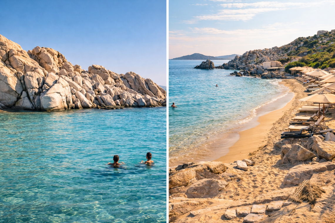 Pour une journée plage, Kolymbithres est parfaite si tu veux alterner entre exploration des rochers, petites criques et baignades façon « piscine naturelle », tandis que Faragas conviendra mieux si tu cherches un combo nage + confort (transats, bar, service à la plage).